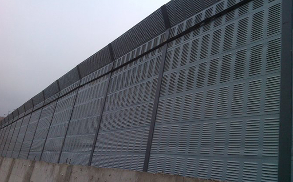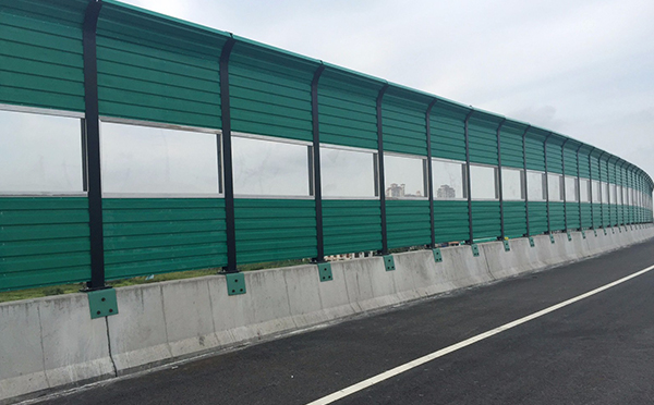 高架橋聲屏障目前常用的是吸聲和隔聲混合型聲屏障,高架橋聲屏障由上下部分金屬百葉吸聲屏、中部透明隔聲共三屏組成,整個屏障呈弧形。
